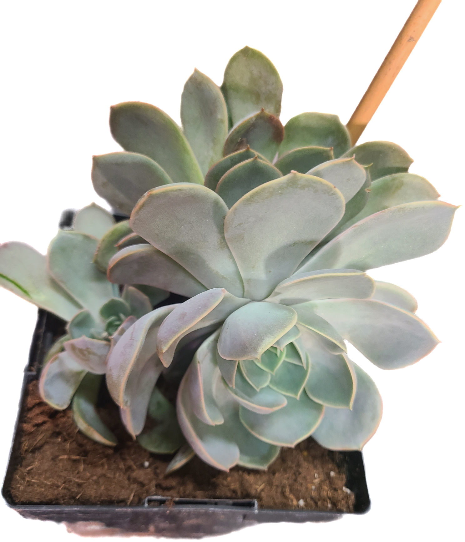 Ghost Echeveria is a dependable grower, either in-ground or potted. If growing indoors, place it near a sunny window to maintain a compact rosette shape. It can tolerate extended drought and light frosts, but be sure it has excellent drainage and protection from heavy rains. Though they are reluctant to produce new offsets, they re-grow readily through leaf propagation