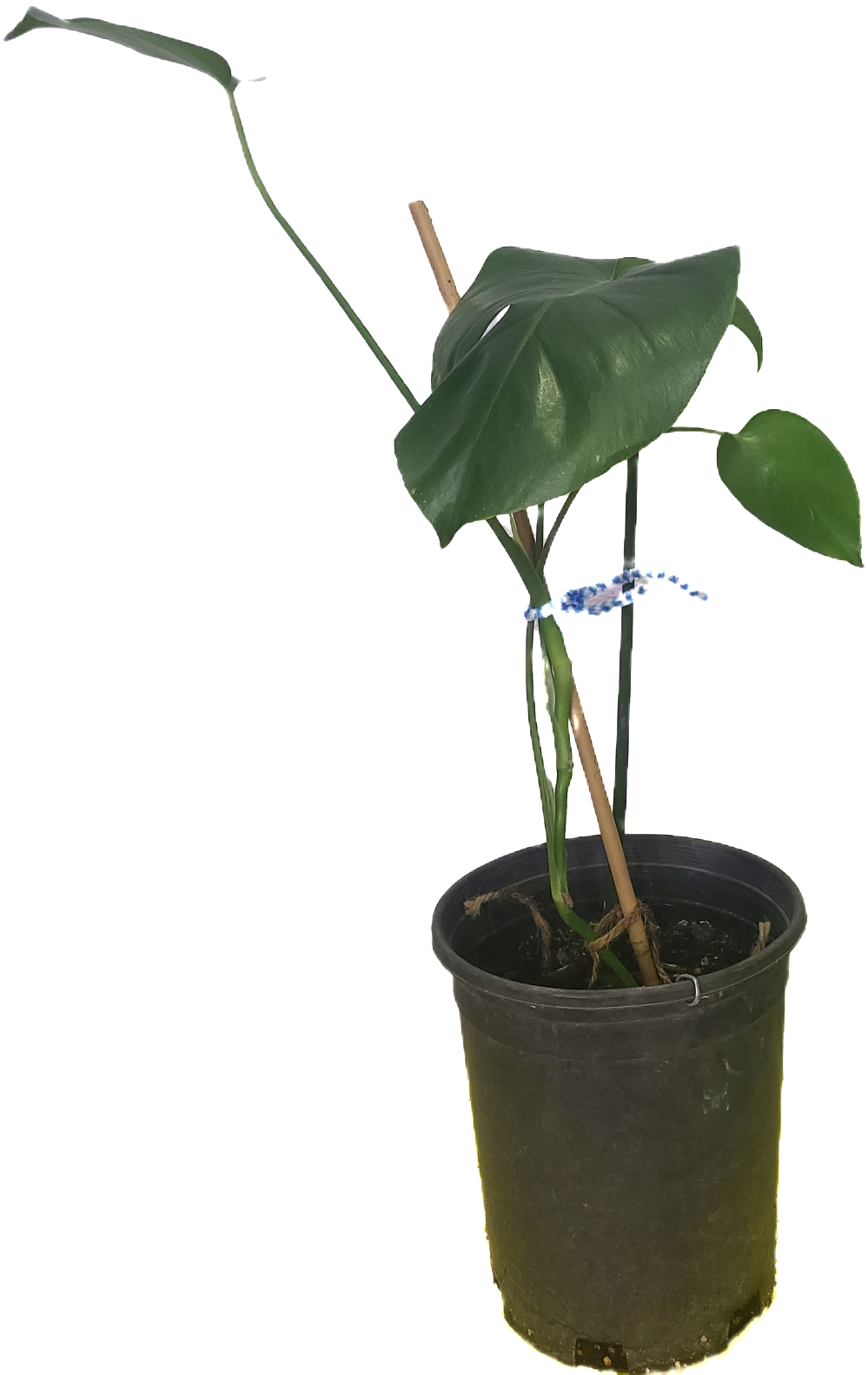 - Monstera, commonly referred to as a "Swiss Cheese Plant". The specific species is likely Monstera deliciosa or potentially Monstera adansonii, both known for their characteristic leaf holes and splits, or fenestrations, as they mature. This popular houseplant is relatively low-maintenance and great for beginners. This popular houseplant is relatively low-maintenance and great for beginners. It thrives in bright, indirect light and should be watered every 1-2 weeks, allowing the soil to dry out between waterings.The plant is effective at removing airborne toxins, helping to improve indoor air quality.