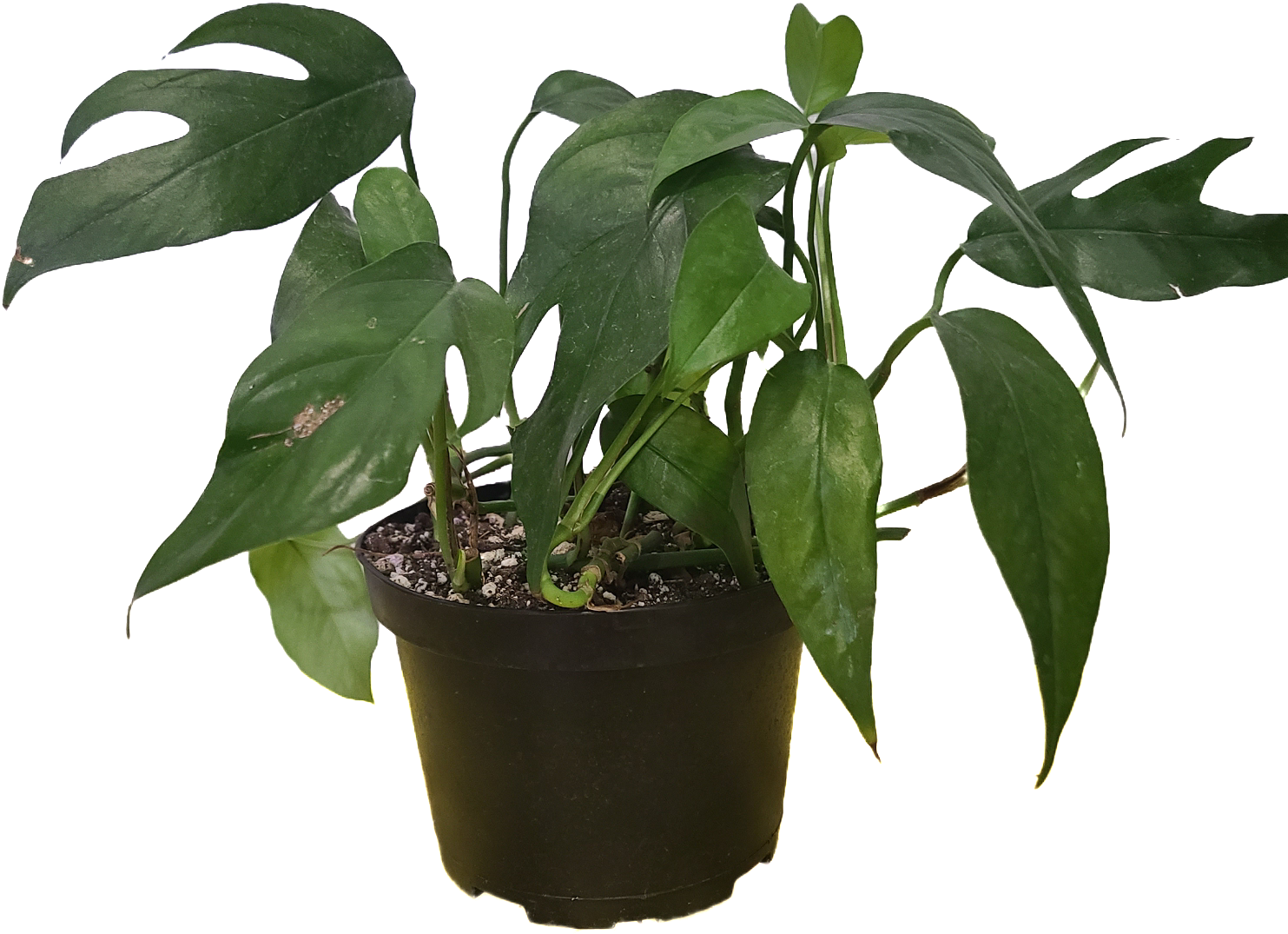 It is a popular houseplant in the aroid family, often confused with plants in the Monstera or Philodendron genera due to its split leaves. Appearance: Features deeply lobed or "split" leaves, though it is not a true Monstera or Philodendron. Light requirements: Prefers bright, filtered, indirect light. Growth habit: A vining plant that can grow quickly and will climb if given support. Care: Requires well-draining soil and should be watered when the top layer of soil dries out.